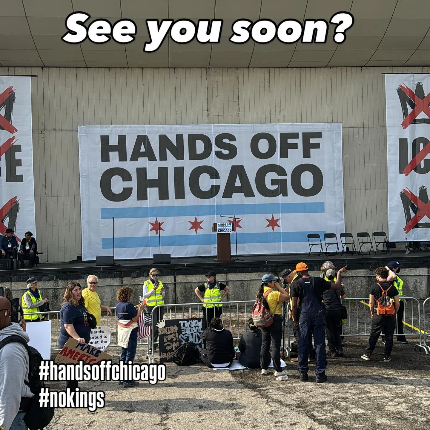 Change your profile pic and post the Hands Off Chicago social image on X/Bluesky, Facebook, or Instagram.